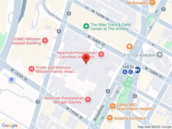 Take the A or C subway train to West 168th Street. From the corner of 168th Street and Broadway, walk 1/2 block west along 168th Street to 630 West 168th Street (College of Physicians and Surgeons).